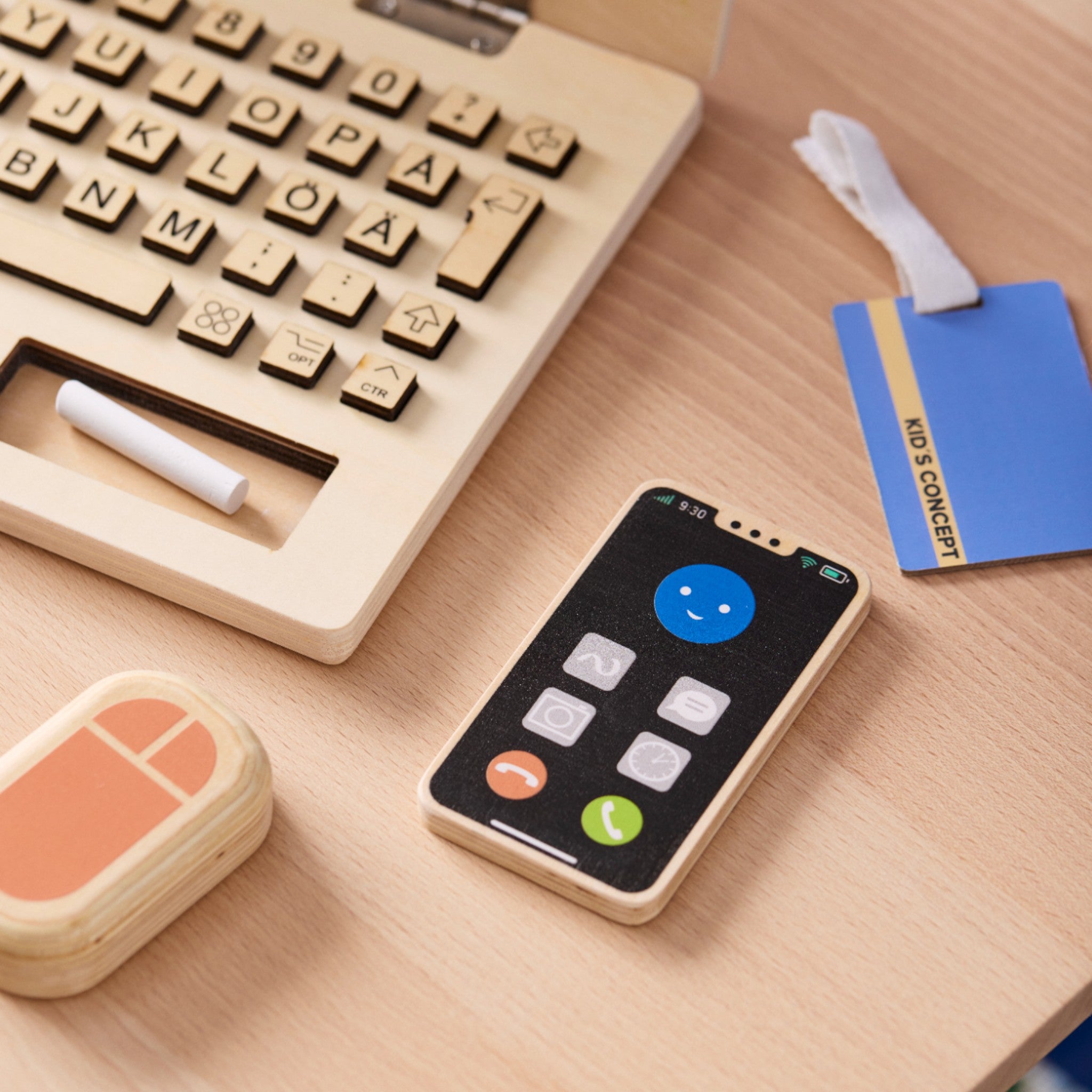Αυτό το Kids Concept Σετ γραφείου – Φορητός υπολογιστής KID’S HUB είναι ένα αξιολάτρευτο παιχνίδι! Ο φορητός υπολογιστής διαθέτει πλήκτρα που μπορούν να πατηθούν για διαδραστική διασκέδαση, μαζί με ένα κινητό τηλέφωνο, ένα ποντίκι, ακόμα και ένα καρτελάκι ταυτότητας για να ολοκληρωθεί η εμπειρία του γραφείου.