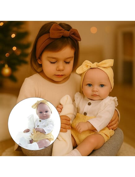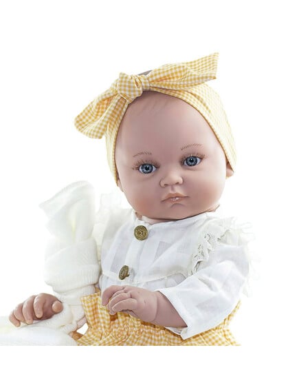 Η Magic baby κούκλα Alicia με κίτρινη κορδέλα είναι το πιο γλυκό μωρό! Έρχεται για πολλές αγκαλιές απο την Ισπανική εταιρεία Lamagik! Είναι χειροποίητο, φτιαγμένο από βινύλιο και έχει ύψος 45εκ. Η Alicia φοράει τα πιο μοντέρνα ρουχαλάκια τα οποία είναι χειροποίητα και φτιαγμένα από κορυφαία υφάσματα!